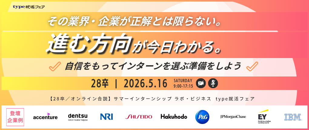 【28卒|業界別オンライン合説】サマーインターンのためのビジネス研究 type就活フェア