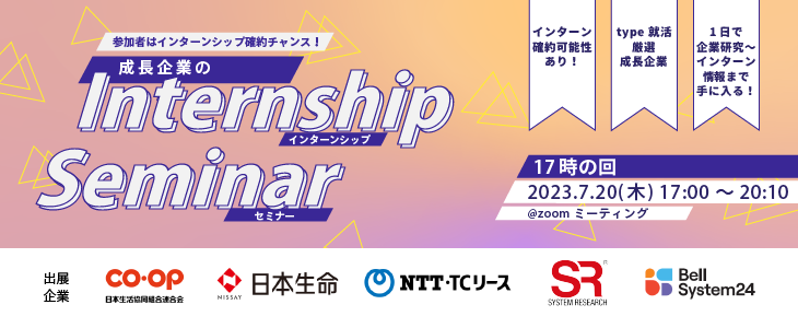 type就活厳選の成長企業5社が参画!参加者はインターンシップ確約のチャンス!