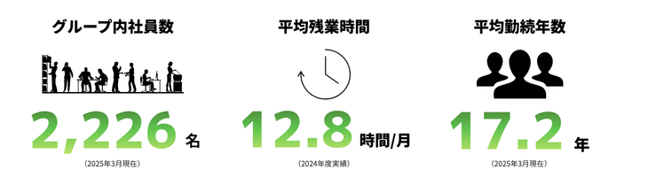 健康経営優良法人(大規模法人部門)の上位500社にあたる「ホワイト500」に連続認定。月平均残業12.8時間、有休取得率83.4%とワークライフバランスが充実しています。世界各国に拠点を持ち、多国籍なメンバーが活躍するダイバーシティ豊かな社風です。