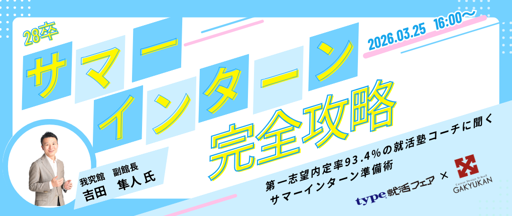 「【27卒/選考直結】type就活フェア スカウト選考<オンライン>グループE」へ