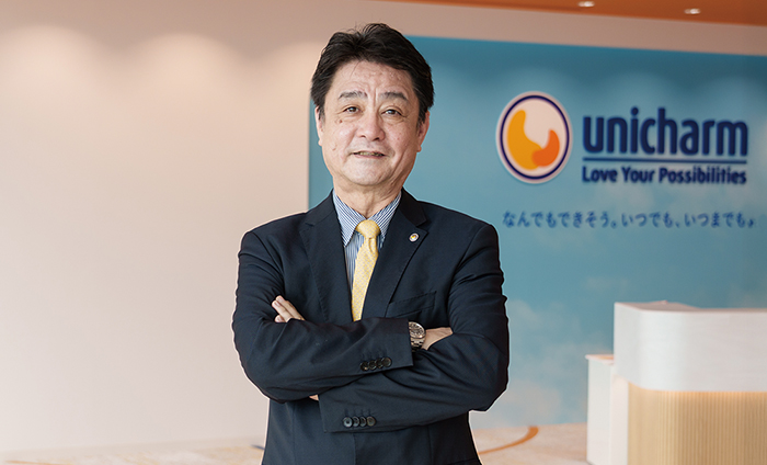生活者の価値観は多様化し、市場は予測困難な状況が続いています。生理用品や紙おむつなどのパーソナルケア商品を扱う当社にとって、国や地域ごとに異なる生活習慣や文化に寄り添い続けることは不可欠です。先の読めない環境下でも、事業を進める上で堅持してきたのは「消費者に始まり、消費者に終わる」という徹底した顧客視点です。人々の声をかたちにした当社の商品は、世界約80以上の国・地域で愛され、特に近年は、アジア・中東・アフリカなど人口増加が進む新興国での事業拡大が顕著です。この多様な市場で成果を持続的に生み出せる背景には、ユニ・チャーム独自の「共振の経営」があります。これは、経営陣の戦略と現場の知見を結び付け、情報を振り子のように行き交わせることで、地域に適した商品開発や的確な意思決定を可能にする仕組みです。全員が主体的に考え行動することで高い目標を実現し、海外売上比率は約65%に達するまで拡大しました。現在も、世界各地の1300を超えるスクラムというチームが、週単位で市場の反応やニーズに合わせながら戦略を修正し続けています。