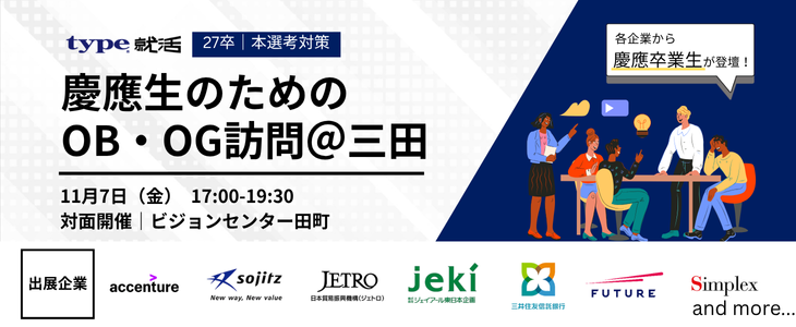 ・アクセンチュア、双日、三井住友信託銀行などの有名企業から慶應出身社員に会える!
