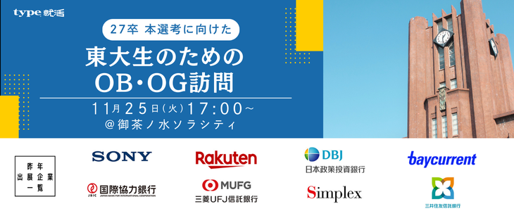 ・P&Gジャパン、野村證券、楽天グループなどの有名企業から東大出身社員に会える!