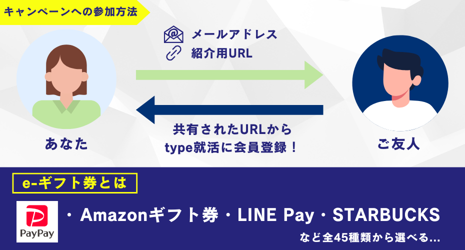 ・本キャンペーンはtype就活による提供です。本キャンペーンについてのお問い合わせはe-ギフトではお受けしておりません。