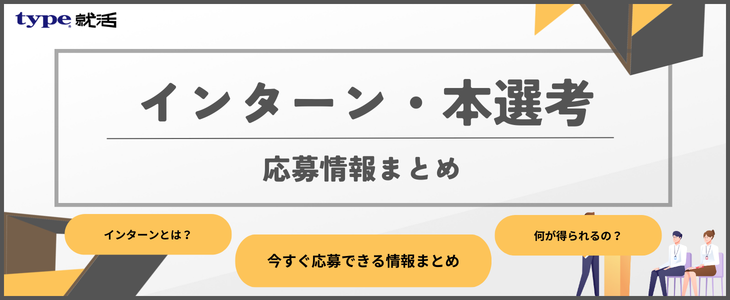 興味のあるイベントやインターンシップ、選考情報があれば、ぜひエントリーください!就活生のスケジュールに合わせて情報を発信していますので、「もっと早く動けばよかった…」ということがなくなるでしょう。就活を少しでも有利に、余裕を持って進めたい方は、ぜひtype就活にご登録ください!