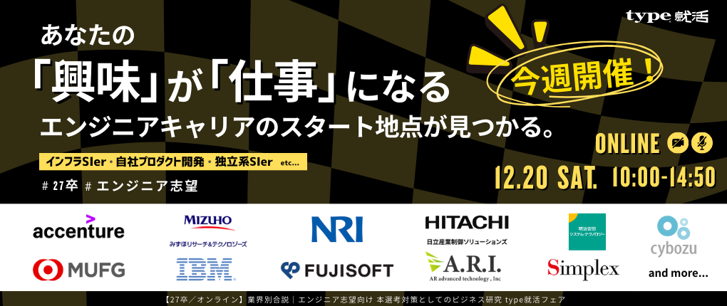 理想のエンジニアキャリアを実現できる企業がわかる!27卒最後のオンライン合説!