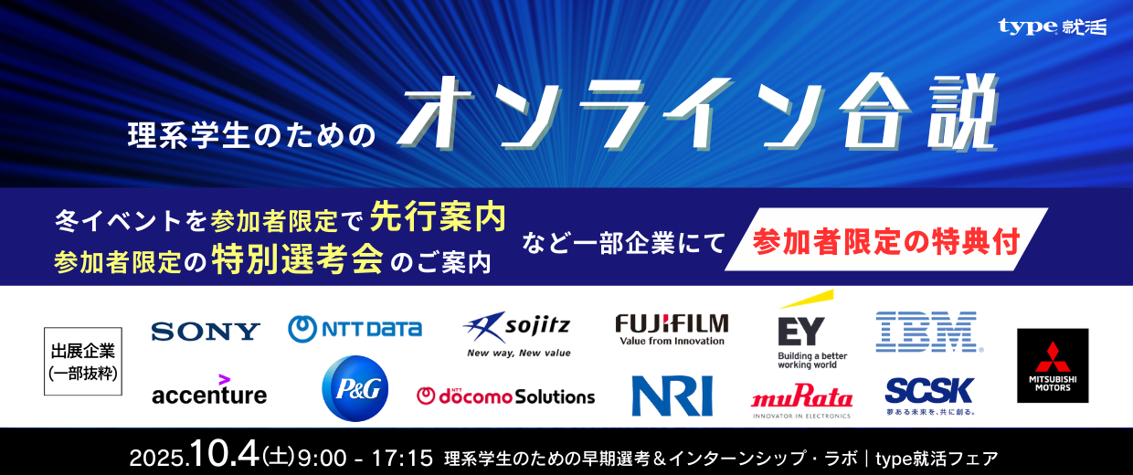 IT・メーカー・コンサル・金融などのリーディングカンパニーが登壇!早期選考・秋冬インターンに向けた情報収集・業界研究ができる!