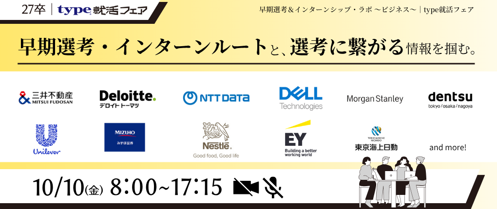※type就活より本説明会に参加いただいた方で、筆記試験の合格者には、type就活エージェントのアドバイザーが内定までサポートいたします※